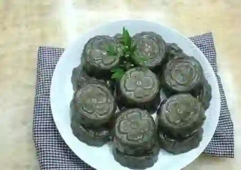 粤西地区的一种家常食品,顾名思义……显然这个饼是用鸡屎……藤做的,鸡屎藤用清水洗干净,磨碎,晒干后再与糯米一同磨成粉,加入红糖一起和面,揉成面团,用饼格压上福字或压成不同的形状的饼,蒸熟后食用。
