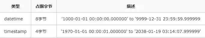 相比datetime,timestamp占用更少的空间,以UTC的格式储存自动转换时区。