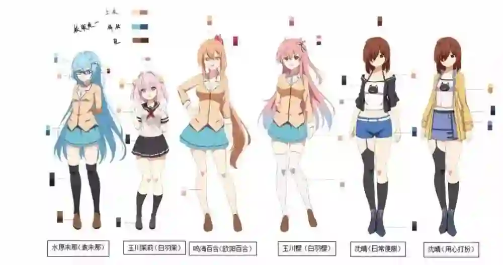 在设定角色时,当作者和编辑达成共识后,文字编辑会设计一张人设表,并反馈给美编,美编再与画师沟通,进一步完善人设。从2016年至今,轻之文库的人设表已经迭代了四十版左右。