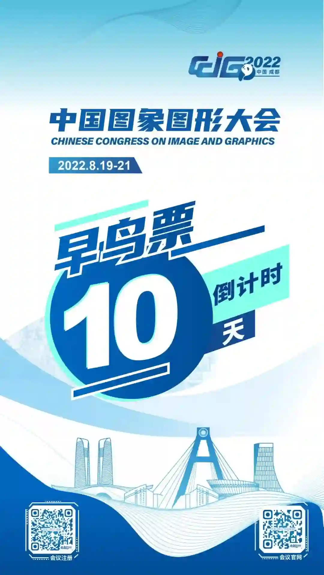 中国图象图形大会(CCIG 2022)将于2022年8月19-21日在成都盛大举办,大会以“图象视界,形智未来”为主题,由中国图象图形学学会主办、四川大学承办、电子科技大学协办。