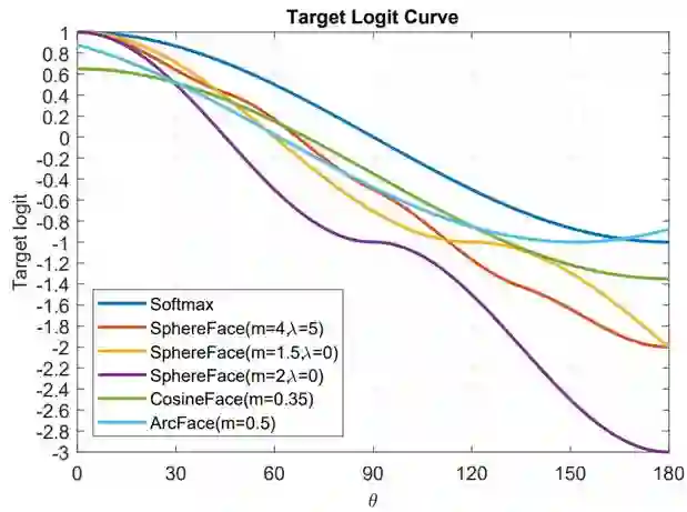 看了这么多基于分类的人脸识别论文,相信你也有种感觉,大家似乎都在损失函数上做文章,或者更具体一点,大家都是在讨论如何设计上图的 Target logit-θ 曲线。