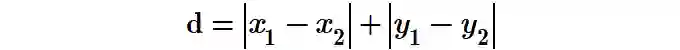 在曼哈顿街区要从一个十字路口开车到另一个十字路口,驾驶距离显然不是两点间的直线距离。这个实际驾驶距离就是“曼哈顿距离”。曼哈顿距离也称为“城市街区距离”(City Blockdistance),出租车几何。它是以类似网格路径的方式,通过坐标系中数据点的绝对轴距总和来描述两点间距离的一种方式。正式意义为L1-距离或城市区块距离,也就是在欧几里得空间的固定直角坐标系上两点所形成的线段对轴产生的投影的距离总和。两个点(x1,y1),(x2,y2)间的曼哈顿距离为