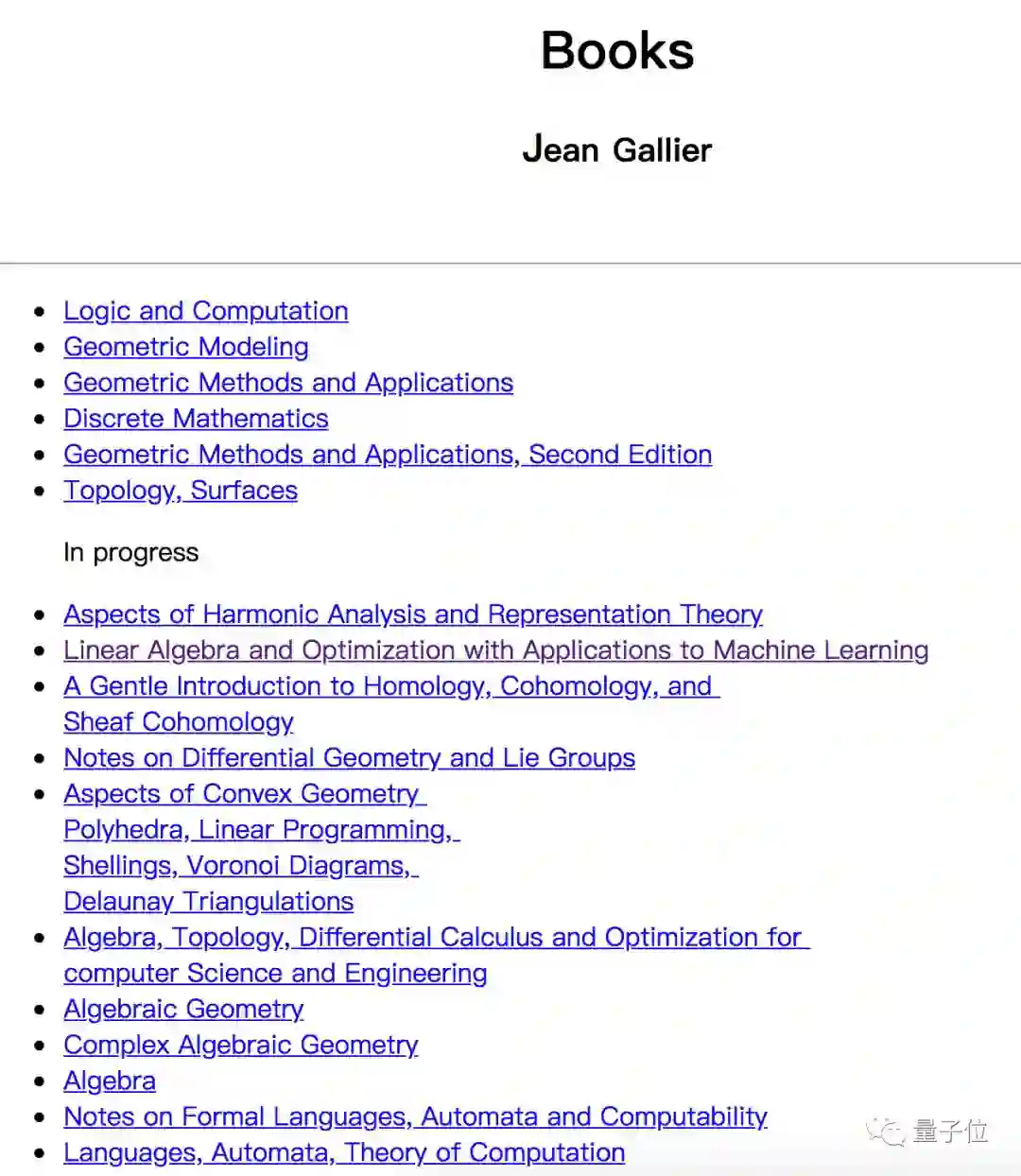 这本书的作者,是宾夕法尼亚大学计算机系教授Jean Gallier,今年已经70岁了。
