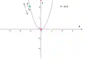 仔细观察,我们的成本函数是 Y=X² 的形式。在笛卡尔坐标系中,这是一个抛物线方程,可以画成下图形式: