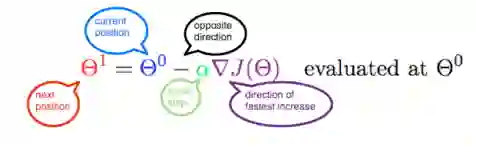 梯度下降算法是一个迭代过程,能让我们得到一个函数的最小值(这里先不提一些额外的注意事项)。下面的公式将整个梯度下降算法汇总成为了一行: