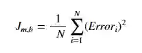 比如说,如果数据集中共有 N 个点,而对于所有这 N 个数据点,我们希望最小化其误差。因此成本函数就将是总平方误差,即: