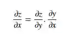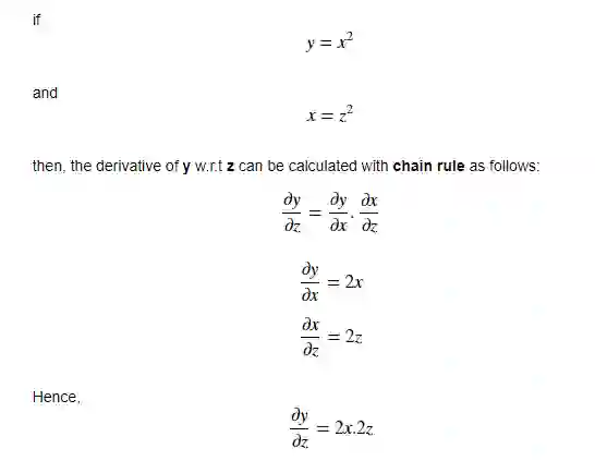 如果变量 z 依赖于变量 y,而变量 y 又依赖于变量 x,则 y 和 z 是因变量,而且 z 也通过中间变量依赖于 x。这被称为链式法则,用数学式可写成: