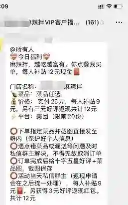 “隔壁的店更离谱,拉了一个客户群,每天在群里提供20份半价餐。正常卖25的一份餐,客户给好评的话,他自掏腰包补贴12块钱,就是在赔本赚吆喝。”