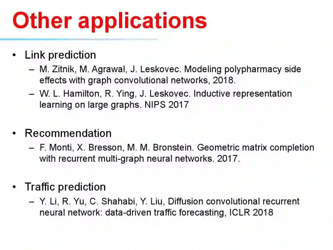 卷积神经网络在处理图像、自然语言等具有较好空间结构的数据时已经展现出了很好的优势。然而,卷积神经网络不能直接应用于图(Graph)这类空间结构不规则的数据上。近年来,研究人员开始研究如何将卷积神经网络迁移到图数据上,涌现出ChevNet、MoNet、GCN、GAT等一系列方法,在基于图的半监督分类和图表示学习等任务中表现出很好的性能。报告将梳理和回顾该方向的主要研究进展,并结合社会媒体计算探讨未来可能的发展方向。