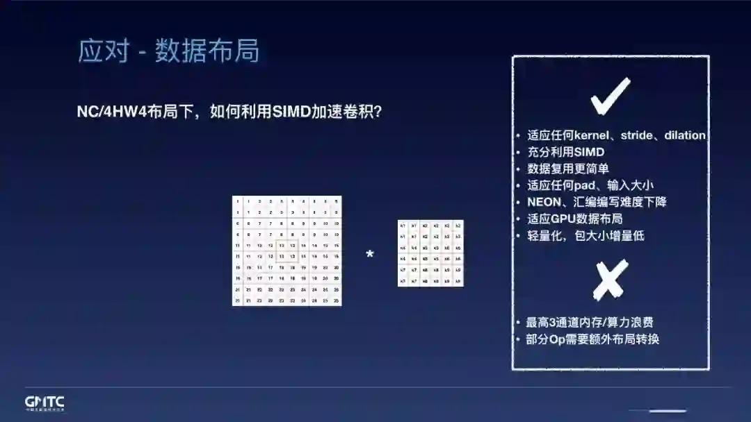 但是, NCHW 布局下,无法充分利用 SIMD 进行加速,同时,实现优化分支越多,占用包大小也就越多。