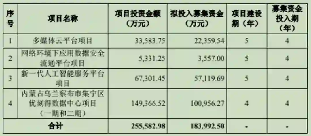 从上图我们可以看到,UCloud此次募集的资金基本用于了四年内基础设施的建设,其中总投资最高的是内蒙古乌兰察布数据中心,本次筹资额的39.50%将用于支撑该项目,在该项目进行的第五年,出现了明显的资金不足。