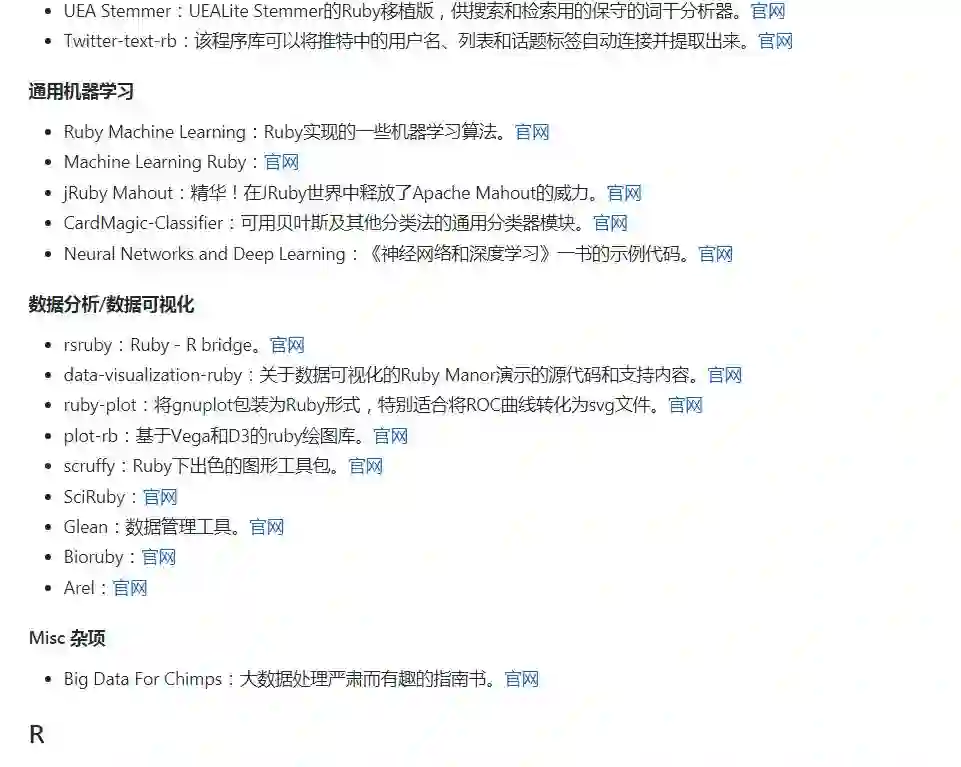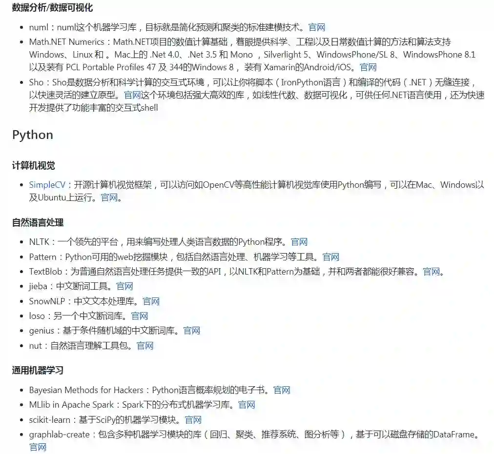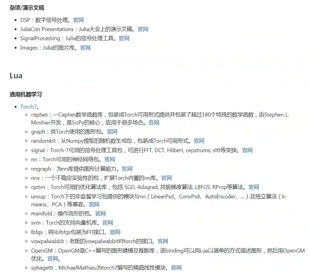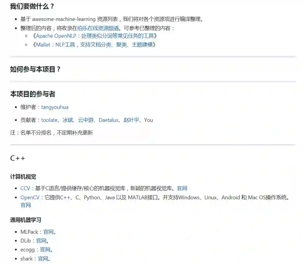 作者的话:我想很多程序员应该记得 GitHub 上有一个 Awesome - XXX 系列的资源整理。awesome-machine-learning 就是 josephmisiti 发起维护的机器学习资源列表,内容包括了机器学习领域的框架、库以及软件(按编程语言排序)。Awesome 系列虽然挺全,但基本只对收录的资源做了极为简要的介绍,如果有更详细的中文介绍,对相应开发者的帮助会更大。这也是我们发起这个开源项目的初衷