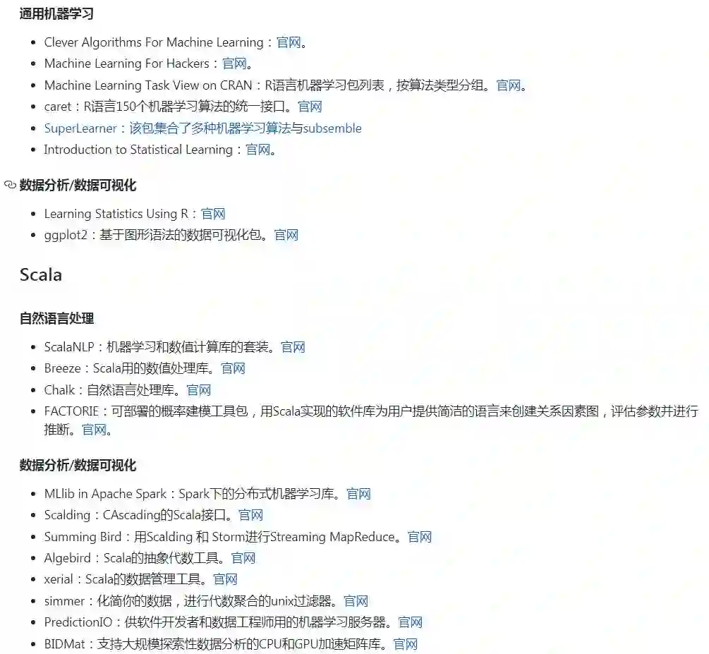 机器学习资源大全中文版,包括机器学习领域的框架、库以及软件。