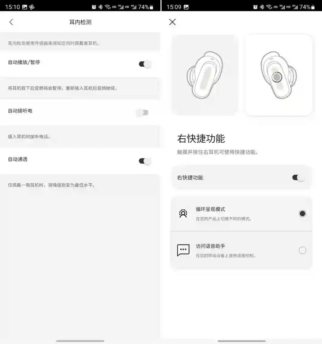 至于预置的安静和适应两种模式,前者对应 10 级满格降噪,后者则对应通透模式
