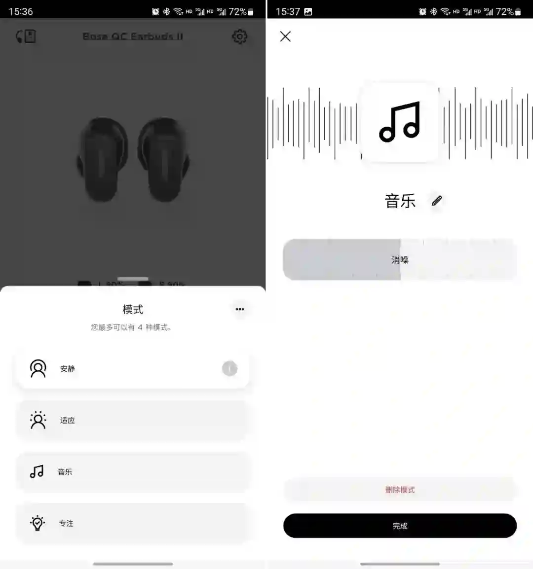 换句话说,虽然引入了「模式」这一概念,但 BOSE QuietComfort 消噪耳塞 II 本质上提供的还是 1~10 级降噪强度记忆功能,既然模式名称不能自定义,那为什么又要借着「自定义」之名做一套并不直观也不像索尼那样拥有场景化、智能化切换功能的模式设计呢?