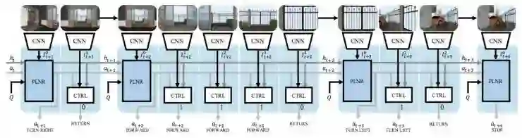 FAIR 的智能体将导航任务分解为一个规划者(PLNR)模块和一个控制器(CTRL)模块。规划者从卷积神经网络(CNN)获得输入,然后决定所采取的动作。同时控制器将决定继续执行该动作的时间步变量——从而实现方向和速度之间的解耦合。这使得规划者能够在更短的时间内进行更有效的操作,从而减轻了训练难度。