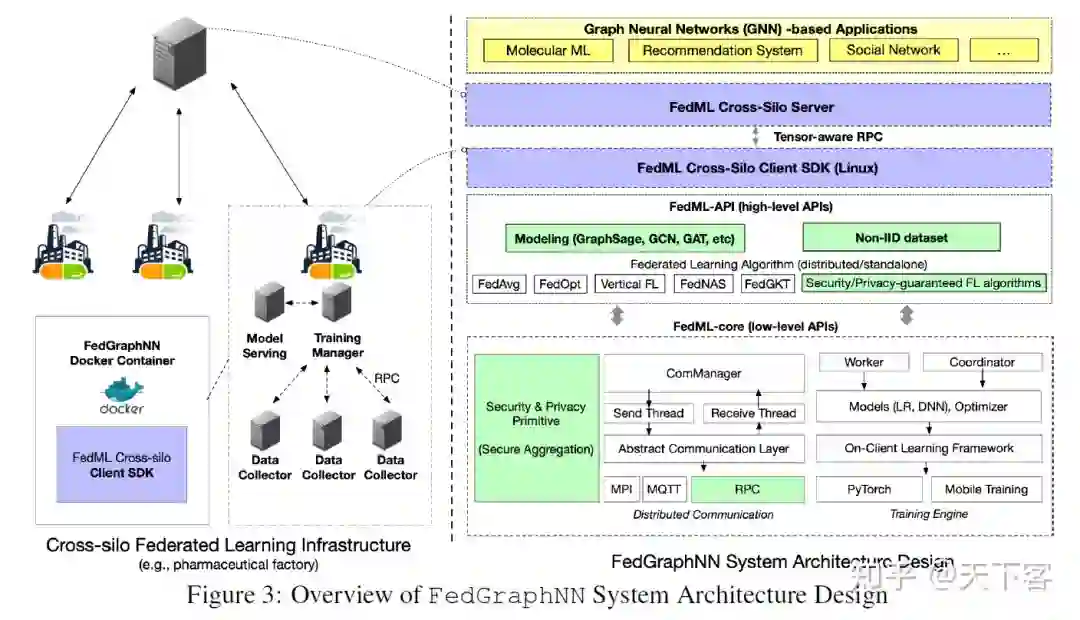 缺乏为不同的 GNN 模型和 FL 算法定制的模块化联合训练系统。