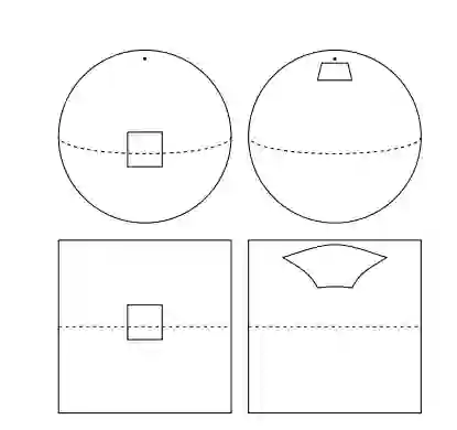 卷积神经网络(CNN)可以很好的处理二维平面图像的问题。然而,对球面图像进行处理需求日益增加。例如,对无人机、机器人、自动驾驶汽车、分子回归问题、全球天气和气候模型的全方位视觉处理问题。将球形信号的平面投影作为卷积神经网络的输入的这种天真做法是注定要失败的,如下图1所示,而这种投影引起的空间扭曲会导致CNN无法共享权重。