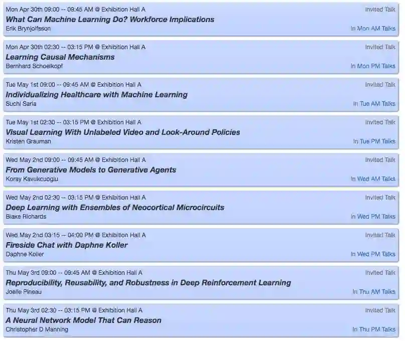 ICLR 2018为期4天,5月3日结束。与往年一样,本次大会每天分上午下午两场。每场形式基本一样,先是邀请演讲(invited talk),然后是讨论,也就是被选为能够进行口头发表(Oral)的论文、茶歇、海报展示(poster)。
