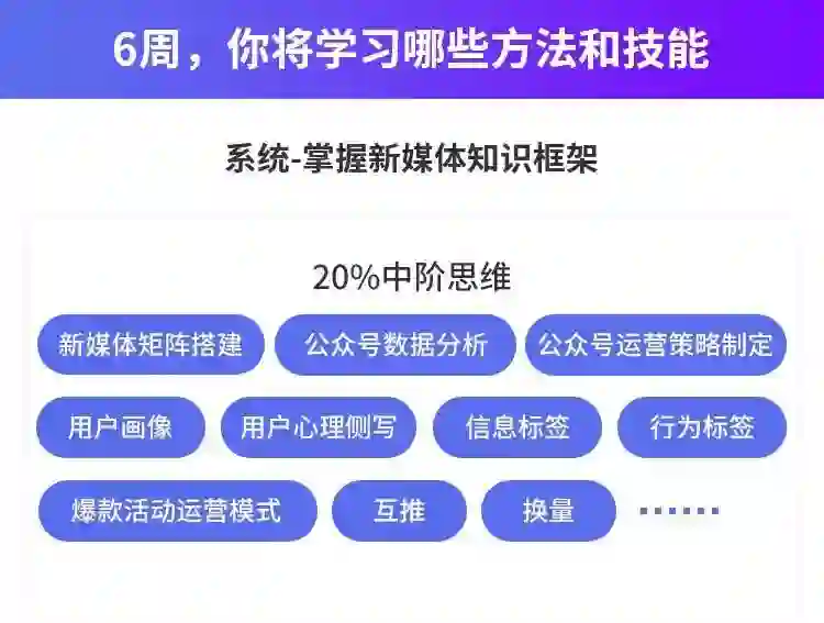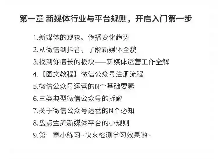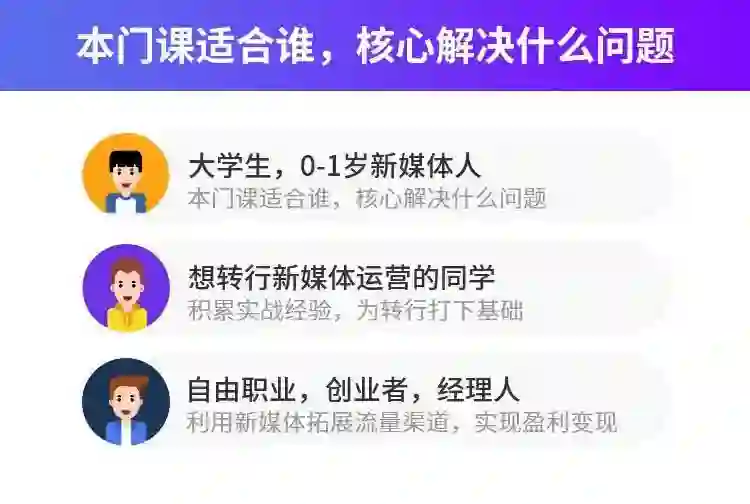 也许,你也想学好新媒体,只是缺少合适的渠道。为了帮助渴望入职就能上手工作的新人,起点课堂和@罗俊敏老师联合打造《新媒体运营实战班 | 自学课》,从内容创作、活动策划、社群运营三大板块,帮助新人全面提升新媒体运营能力。