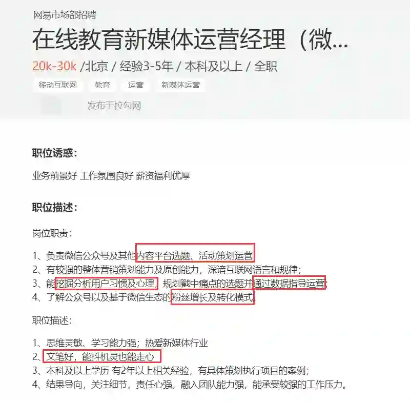 这就导致了目前的行业现状——月薪6k的新媒体小编遍地都是,专业的新媒体运营人才千金难求。