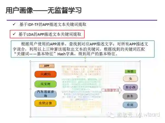 结合用户手机APP的数据,那么基于LDA无监督学习的用户画像过程如下:
