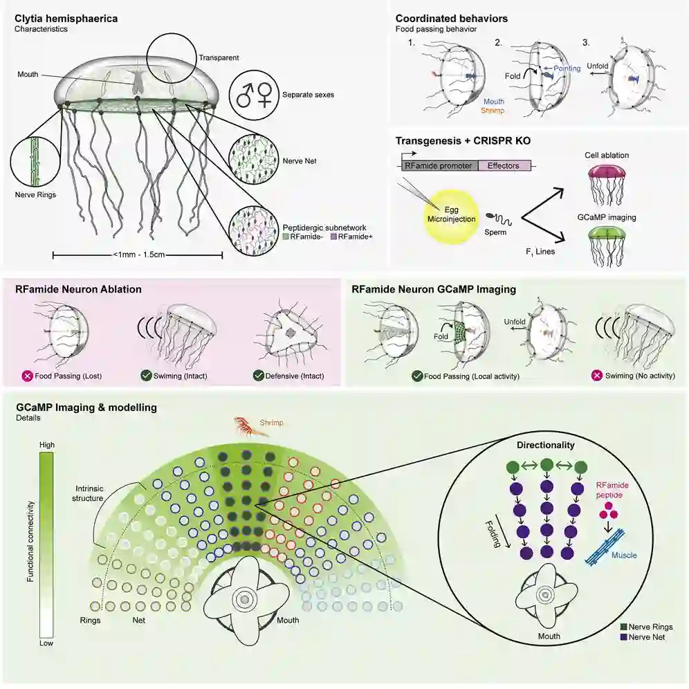 「在未来的工作中,我们希望利用这种水母作为一个易于处理的平台,来精确理解水母的整个神经系统是如何产生行为的。在食物传递的背景下,理解触须、伞和嘴是如何相互协调的,让我们了解与神经系统内部的模块化功能相关的更普遍的问题,以及这些模块是如何相互协调的。我们最终的目标不仅仅是了解水母的神经系统,而是以此为跳板,在未来了解更复杂的神经系统。」
