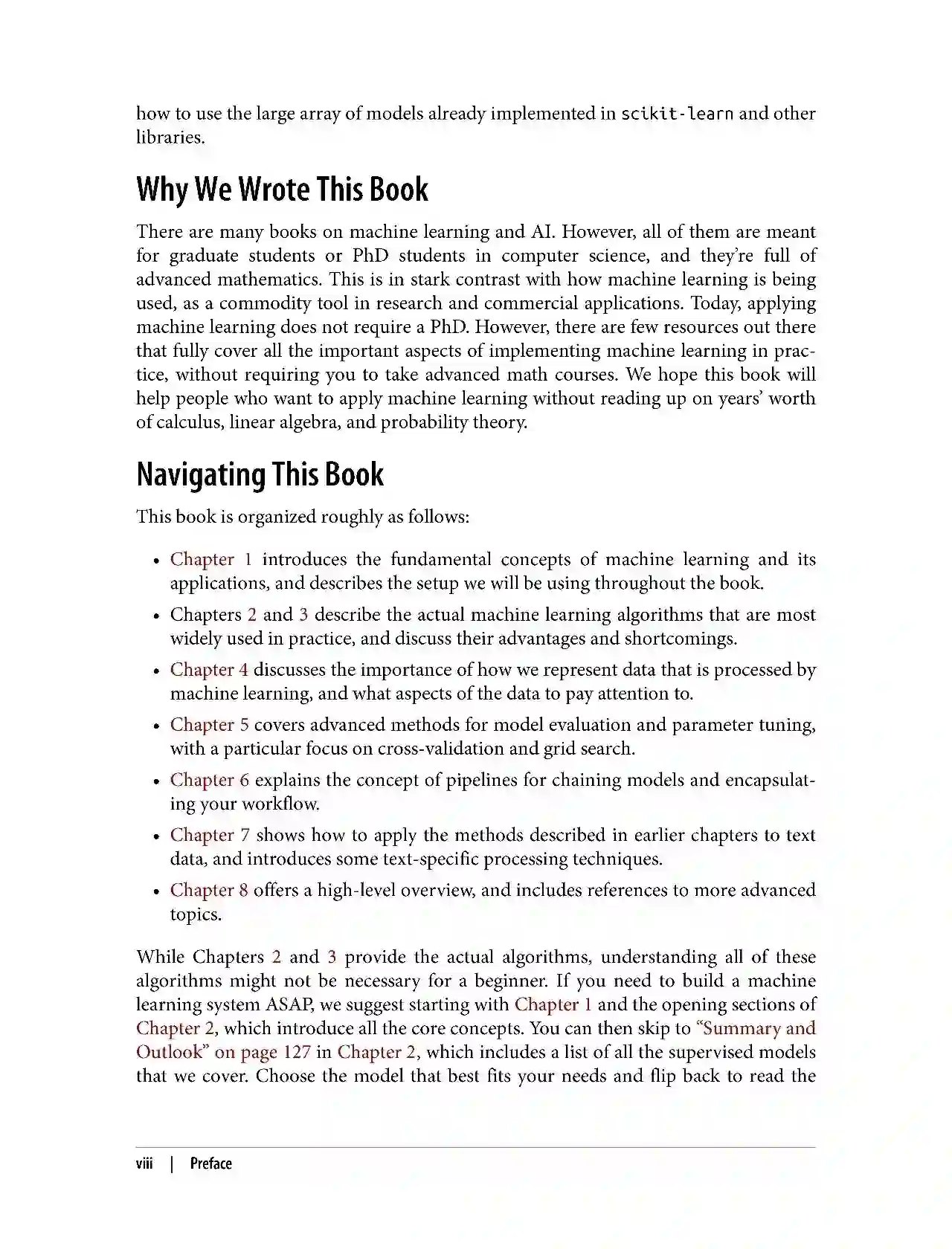 本书主要使用scikit-learn的开发版本,即0.18-dev。 本书的大部分内容也可以同样用于scikit-learn的早期版本,但是您需要调整model_selection模块的所有内容(主要是cross_val_score,train_test_split和GridSearchCV)