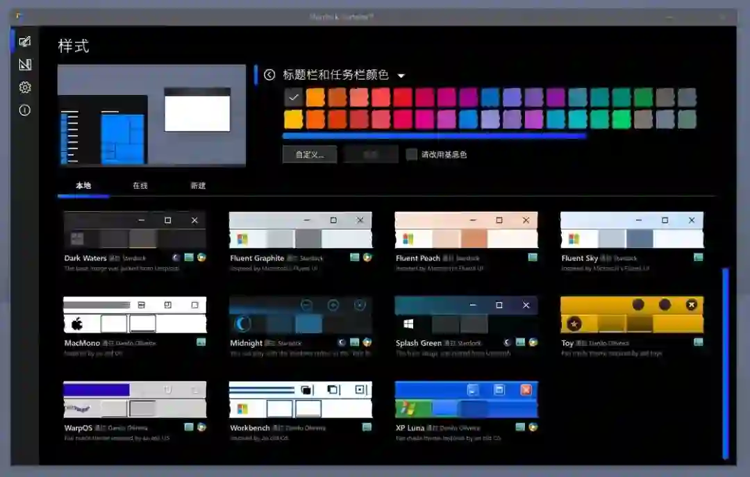 除了直接修改原生系统外观外,还可以选择其他主题风格的外观,这些外观各有各的特色,值得注意的是,软件提供的这几个主题大多都支持深色模式,我们知道 Windows 10 系统自带的深色模式并不好看,更多的给人一种 「单纯的把白色背景改黑而已」 的感觉。