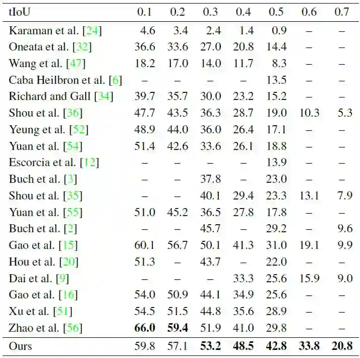 表 5:在 THUMOS'14 上的动作定位 mAP(%)。