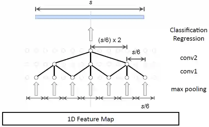 图 2:左图:在时序动作定位中,不同规模的 anchor 共享感受野的局限性。右图:本研究提出的的候选片段网络的 multi-tower 架构。每个 anchor 大小都有一个具备对齐后的感受野的相关网络。