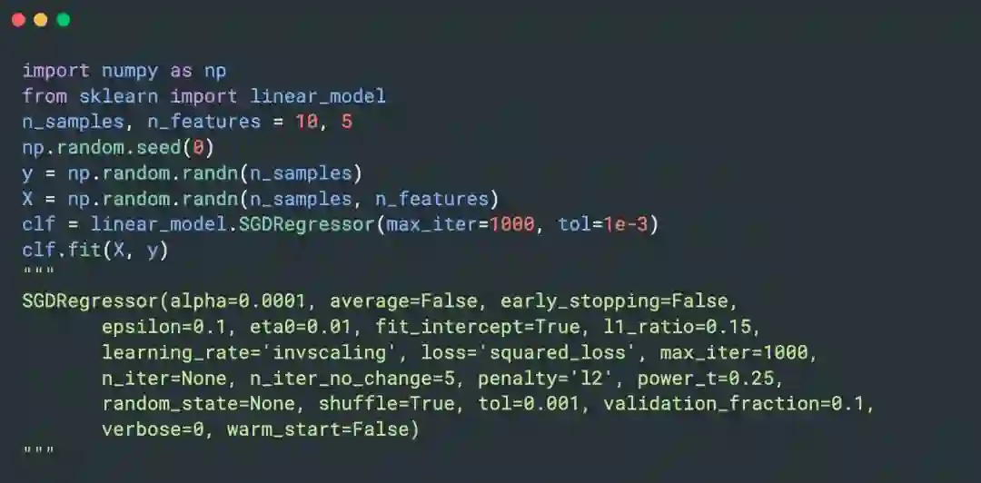 上述的线性模型通过最小二乘法来优化损失函数,SGD 回归也是一种线性回归,不同的是,它通过随机梯度下降最小化正则化经验损失。