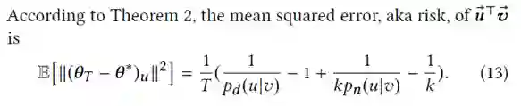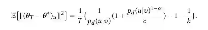 准确性:从风险的角度出发,通过第二个理论得知,均方误差的大小取决于 和 中较小的一项。如果某个节点是正例的概率很大,但是是负例的概率很小,那么误差依然会很大。如果选用上述的负样本分布则会得到: