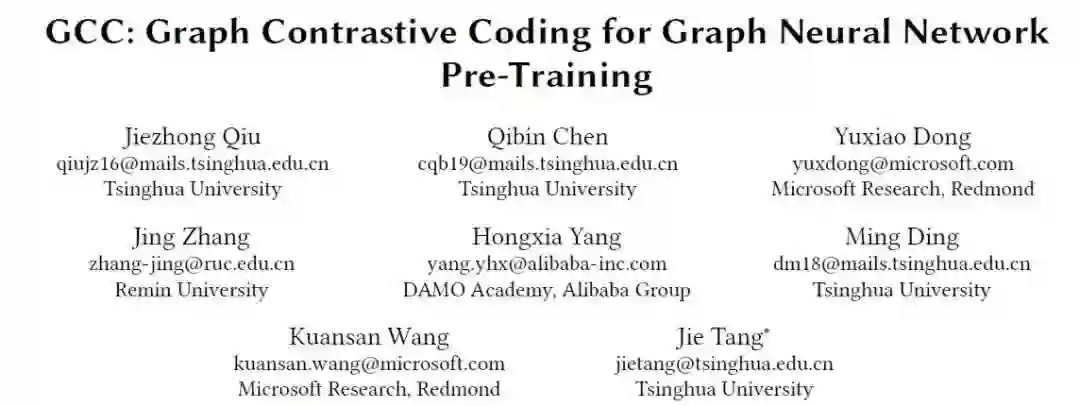 [2] Qiu J, Chen Q, Dong Y, et al. GCC: Graph Contrastive Coding for Graph Neural Network Pre-Training[C]//Proceedings of the 26th ACM SIGKDD International Conference on Knowledge Discovery & Data Mining. 2020: 1150-1160.