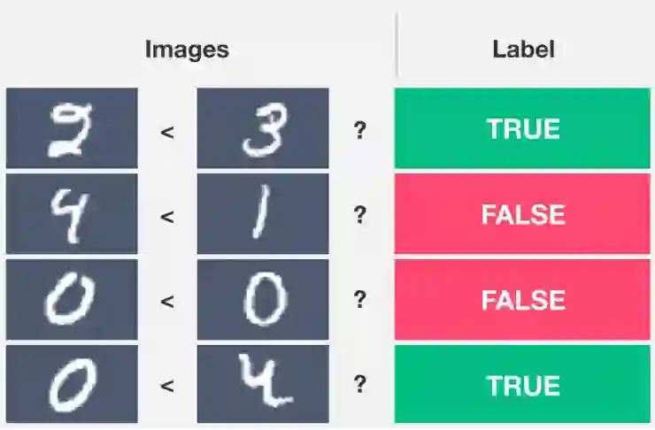 在论文中,DeepMind 演示了 ∂ILP 在归纳任务中的表现。展示给系统的是成对的数字的图像,系统要做的是输出一个标签(0 或者 1)来表示左侧图中的数字是否小于右侧图中的数字。解决这样的任务就同时需要前面提到的两种思维:识别图像中的具体是哪个数字需要直觉性的认知思维,而足够泛化地理解「小于」关系则需要概念思维。