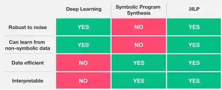 DeepMind 的论文《Learning Explanatory Rules from Noisy Data》就研究了这个问题,表明在一个系统中综合直觉感知思考和可解释概念推理是可能的。这篇论文也发表在了 JAIR 杂志上。论文中介绍的系统,「∂ILP」,对噪声鲁棒、能高效地利用数据,而且能够产生可解释的规则。
