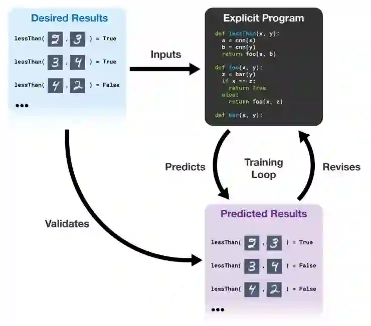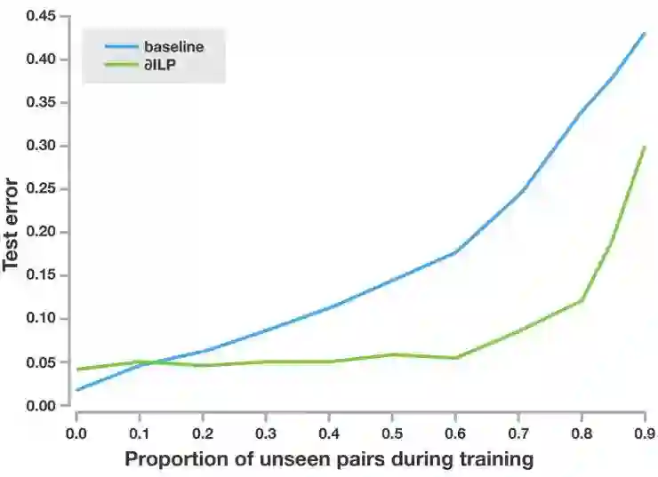 论文中介绍的系统 ∂ILP 可以符号化地泛化。当它看过「x<y」、「y<z」、「x<z」的样本之后,它就会考虑「<」这个关系有可能是传递性的。当它确认了这个通用规则之后,它就可以把它用在一对以前从来没有见过的数字上。