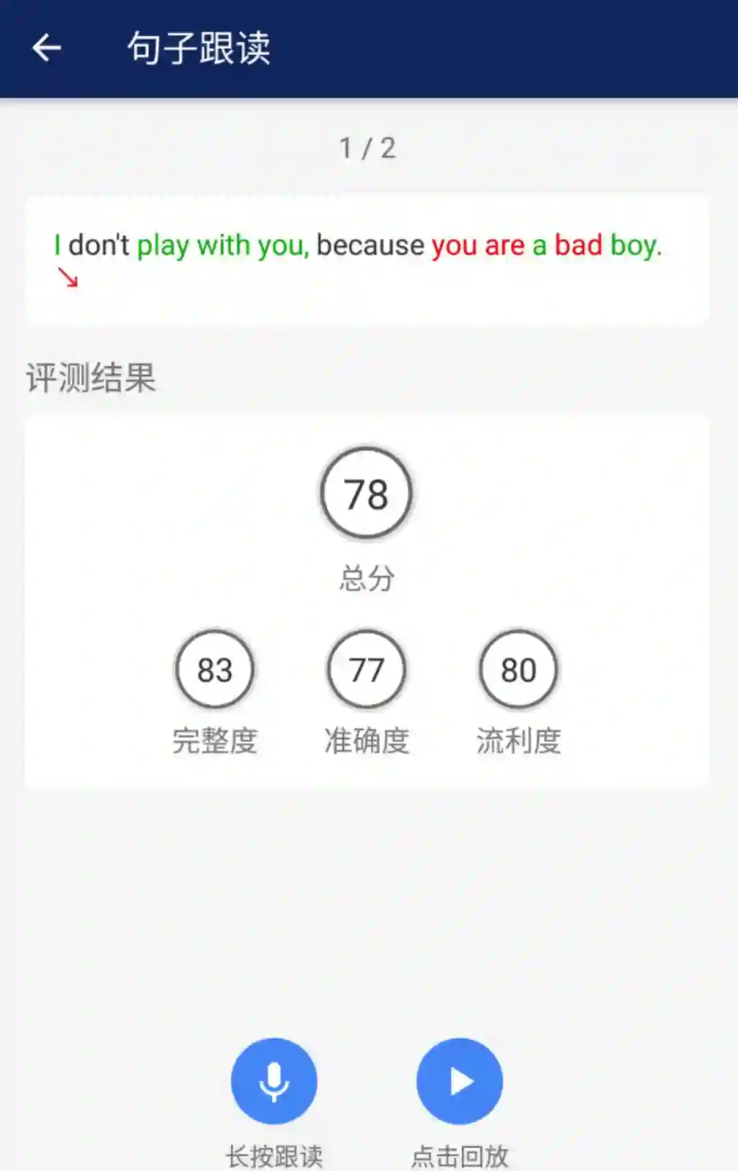 我带着雅思口语 8 分的自信试用了「句子跟读」功能,被算法轻松抓出了三处心服口服的错误: