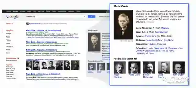 2012年5月,Google推出Google知识图谱(Google Knowledge Graph),并利用其在搜索引擎中增强搜索结果。这是“知识图谱”名称的由来,也标志着大规模知识图谱在互联网语义搜索中的成功应用。