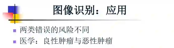但是在不同的问题里,识别错误的风险是不一样的。比如我们做一个医学上的诊断,本来是正常人,你判别说他有癌症,这种错误就导致虚惊一场。还有一种情况是他患有恶性肿瘤,算法没有识别出来而导致了延误治疗。这样的错误风险就很大。因此我们在优化的时候,这个目标函数其实是应该把这样的决策错误和风险放到里面去,我的目标是优化这个风险。但是这件事往往是和应用、和我们的产品设计相关。所以不同的产品设计,它的决策风险不一样。所以我们在设计产品的时候,是要考虑。