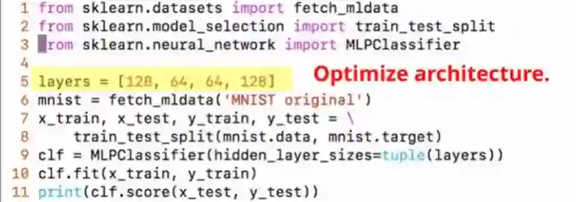 以层数搜索为例,我们需要优化的是一个用于分类的多层感知器的层数以及每一层的神经元个数: