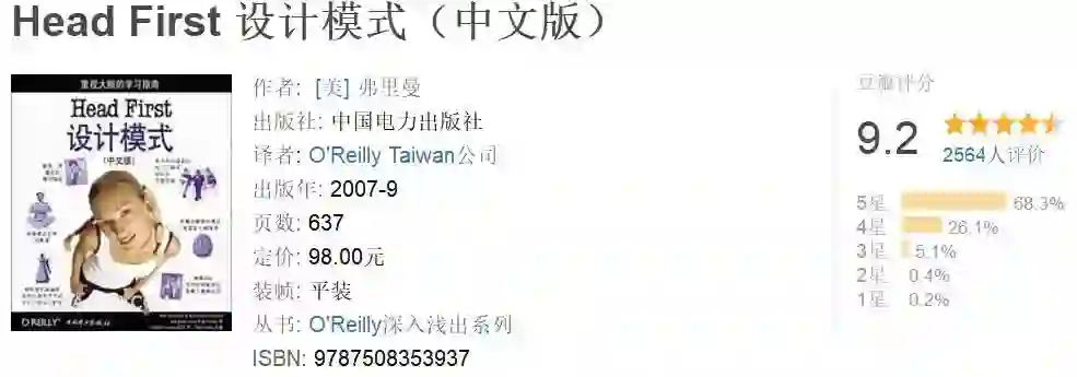 本书同样是Oreilly的Head First系列中的一本,书中依然采用插入大量的插图、图例的方式来进行辅助讲解,完整地涵盖了四人组版本全部23个设计模式。