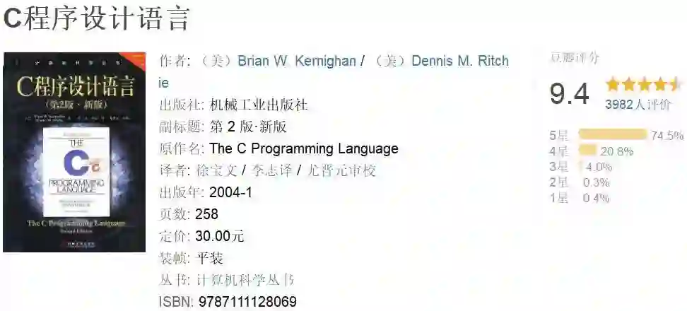 我们现在见到的大量论述C语言程序设计的教材和专著均以此书为蓝本。无论是作为一本C语言教程,还是一本技术图书,这本书都相当出色。