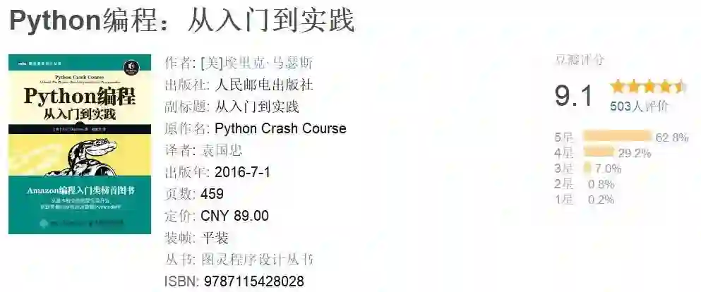 Amazon编程入门类榜首图书,国内 Python 入门第一书。基于 Python3.5 同时也兼顾 Python2.7,是一本全面的Python编程,从入门到实践教程。
