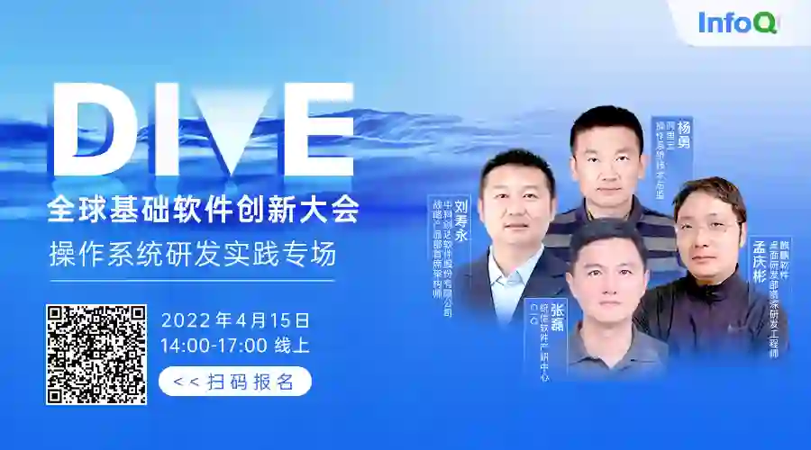 4 月 15、16 日,DIVE 全球基础软件创新大会(线上)来啦!本次大会将围绕操作系统、中间件、编译语言、数据库、微服务等不同领域做深入探讨,也将聚焦人才建设、投资和创业等问题进行洞察和分析。