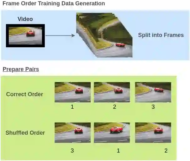 通过打乱视频中的视频帧来生成训练对(视频帧,正确的顺序)。