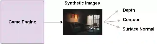 通过使用游戏引擎生成合成图像并将其调整为真实图像来准备训练对(图像,属性)。