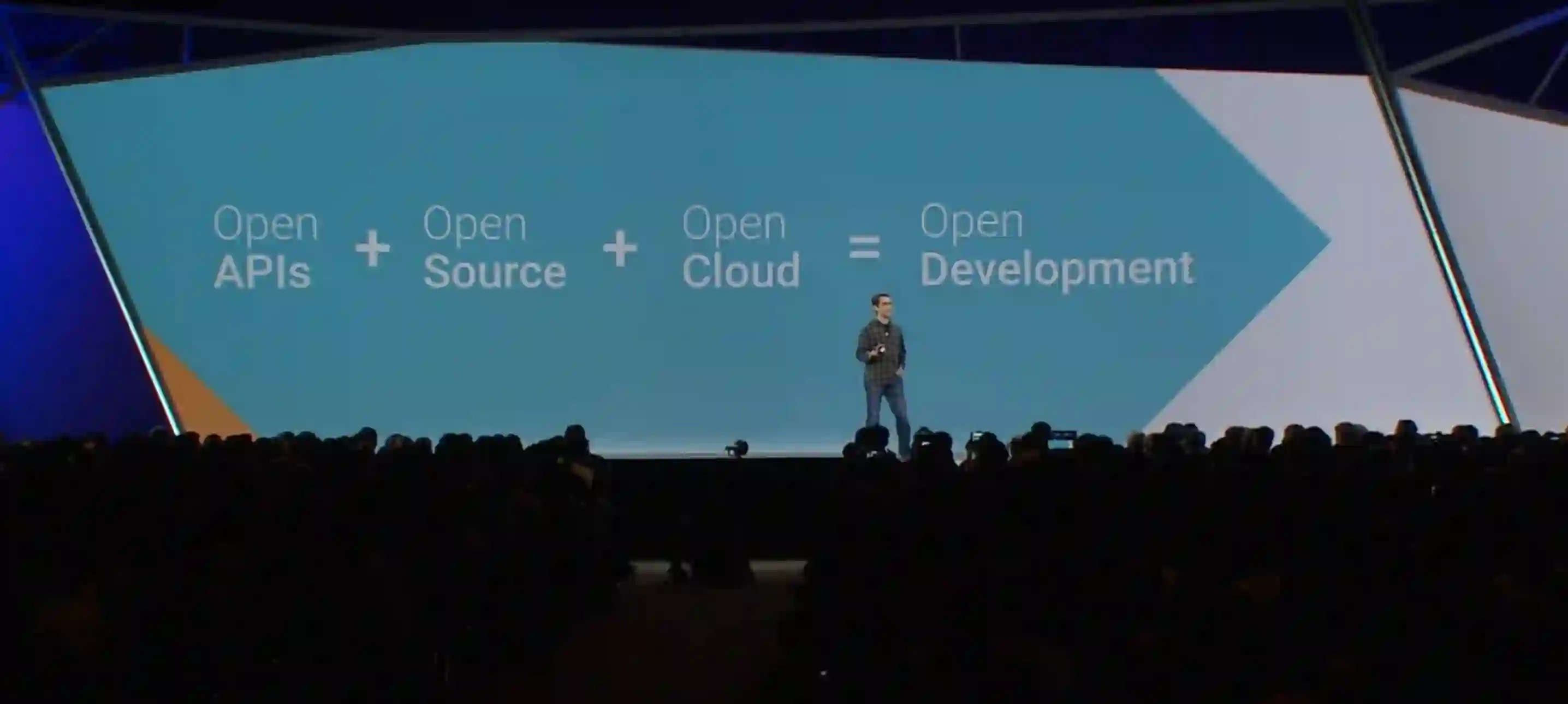 他认为开放研发是我们如今都在迈向的一种模式,它包括开放 API、开放资源、开放云。开放云意味着要接受开源并回馈开源、开放权限(没有进入或退出的障碍)以及开放生态系统。