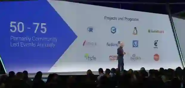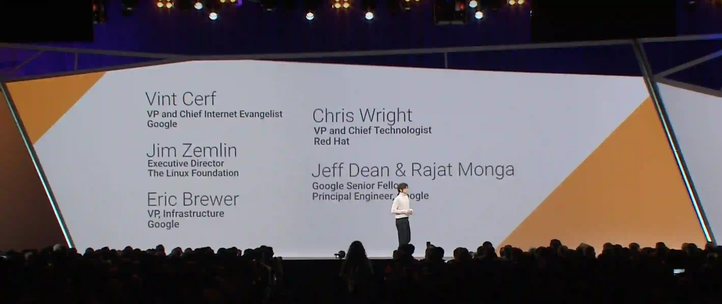然后谷歌架构副总裁 Eric Brewer 详细地介绍了谷歌在开源项目的贡献,比如谷歌主导的开源项目安卓、Kubernetes、TensorFlow 和 Chrome 等都已经在各自领域取得了领先。