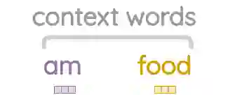 为了理解预训练,让我们以一个简单的玩具为例。我们有一个中心词是“eating”的句子,需要预测上下文中的词“am”和“food”。